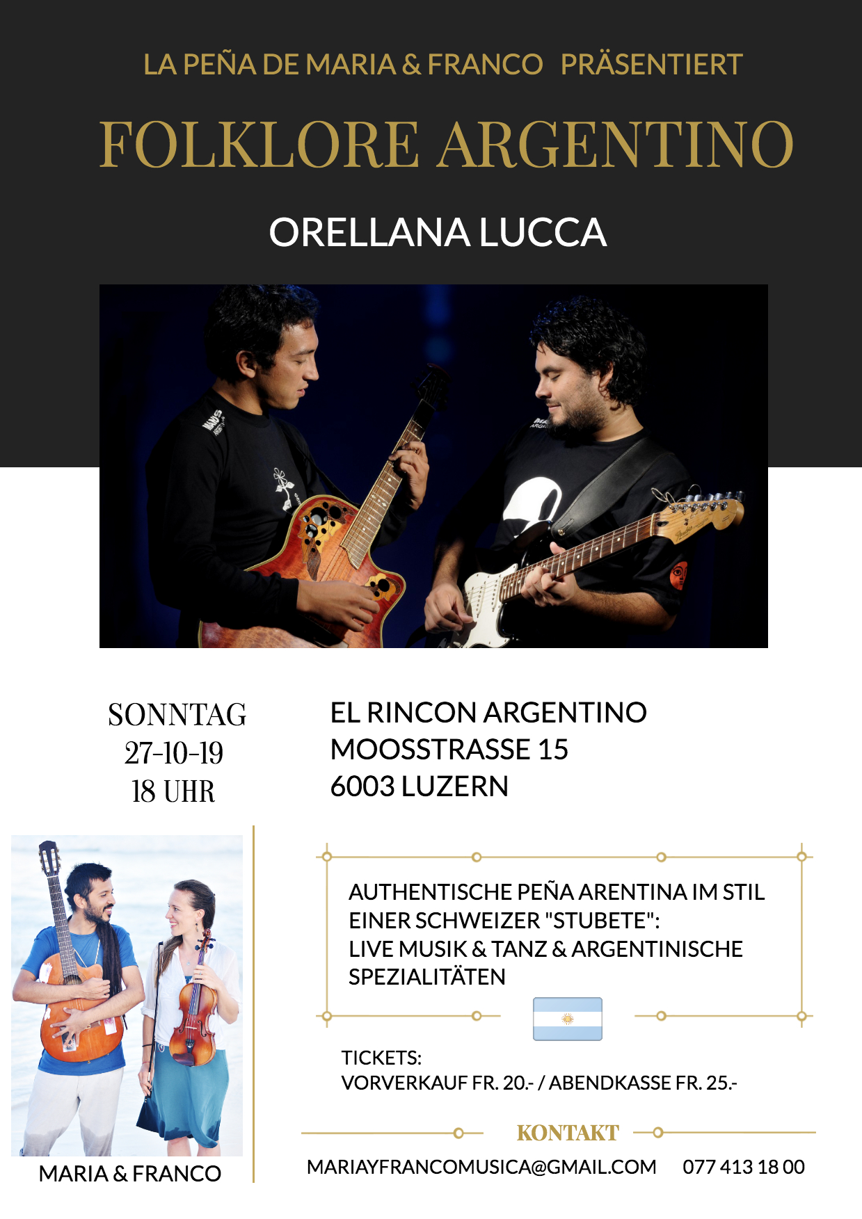 Die Peña de Maria & Franco im Restaurant Rincón Argentino präsentiert das erstklassige Duo Orellana Lucca aus Argentinien.